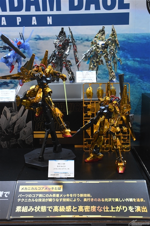日本《機動戰士鋼彈》官方鋼普拉旗艦店 GUNDAM BASE 發表了出自《機動戰士Z鋼彈》的最新限定商品「MG 1/100 百式 Ver.2.0[機械核心電鍍]」預計於 2025 年 10 月發售的消息,同時也在『第63屆日本靜岡模型展』中展出組裝完成後的樣品。