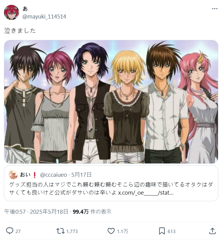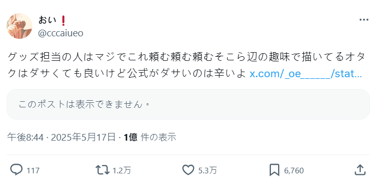 起因是由這位推主 Po 文表示 : 「拜託了官方周邊設計部門的各位,真的拜託拜託拜託!宅宅自己畫得醜一點我還能笑笑接受,但官方做得醜真的會讓人心碎啊……。」,看得出他在抱怨某個官方商品設計太過糟糕,就算自己很推這個角色或作品,還是買不下去...。