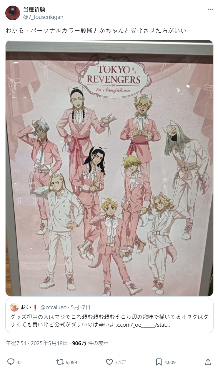 連《東京復仇者》這種,也出現這種粉絲認為奇怪的官方主題繪圖,真的是讓粉絲都無法接受。