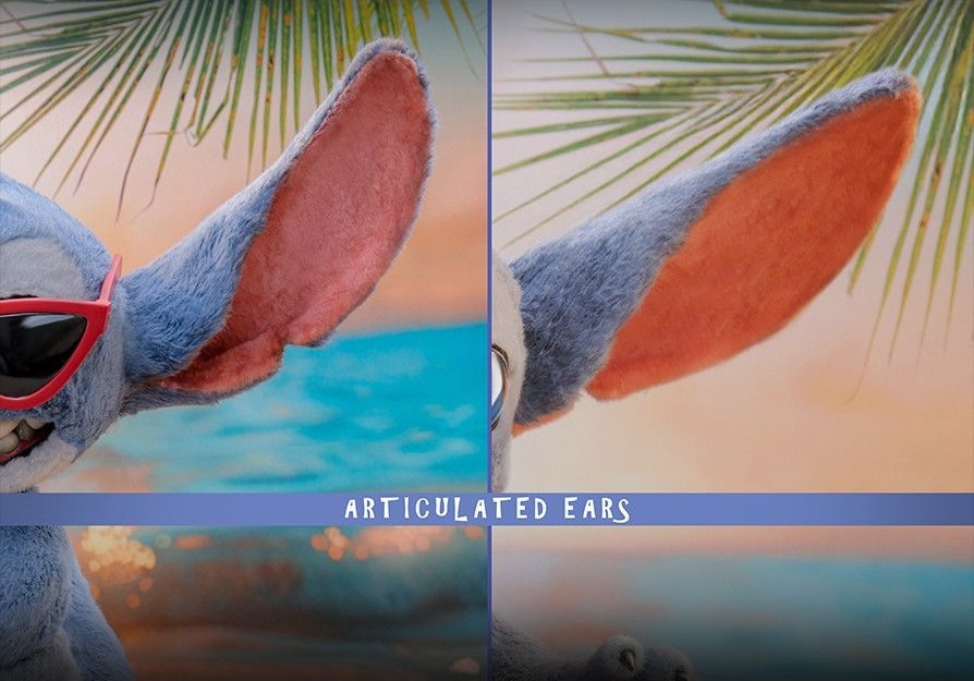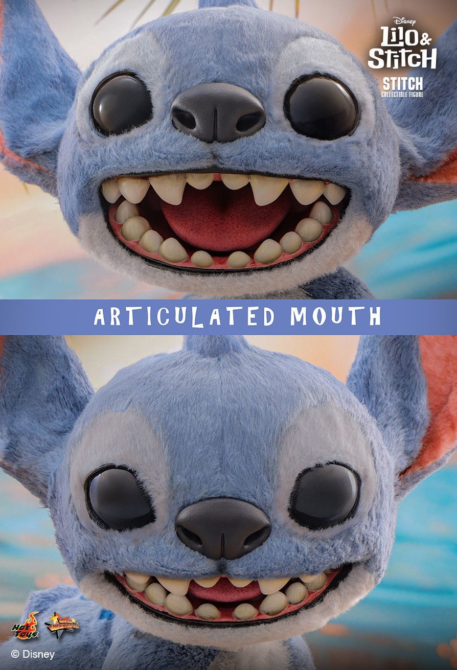 本次的史迪奇高約39公分,將大家最喜歡的626號實驗體史迪奇在真人電影中的形象立體化,頭部和柔軟身體採用了全新設計,使用明亮的淡藍色絨毛布材質還原他毛茸茸的模樣,並寫實重現了牙齒、舌頭與牙齦的質感,四肢、頭部、耳朵及下巴皆做有靈活的可動,不論是站、蹲或坐姿都難不倒他!